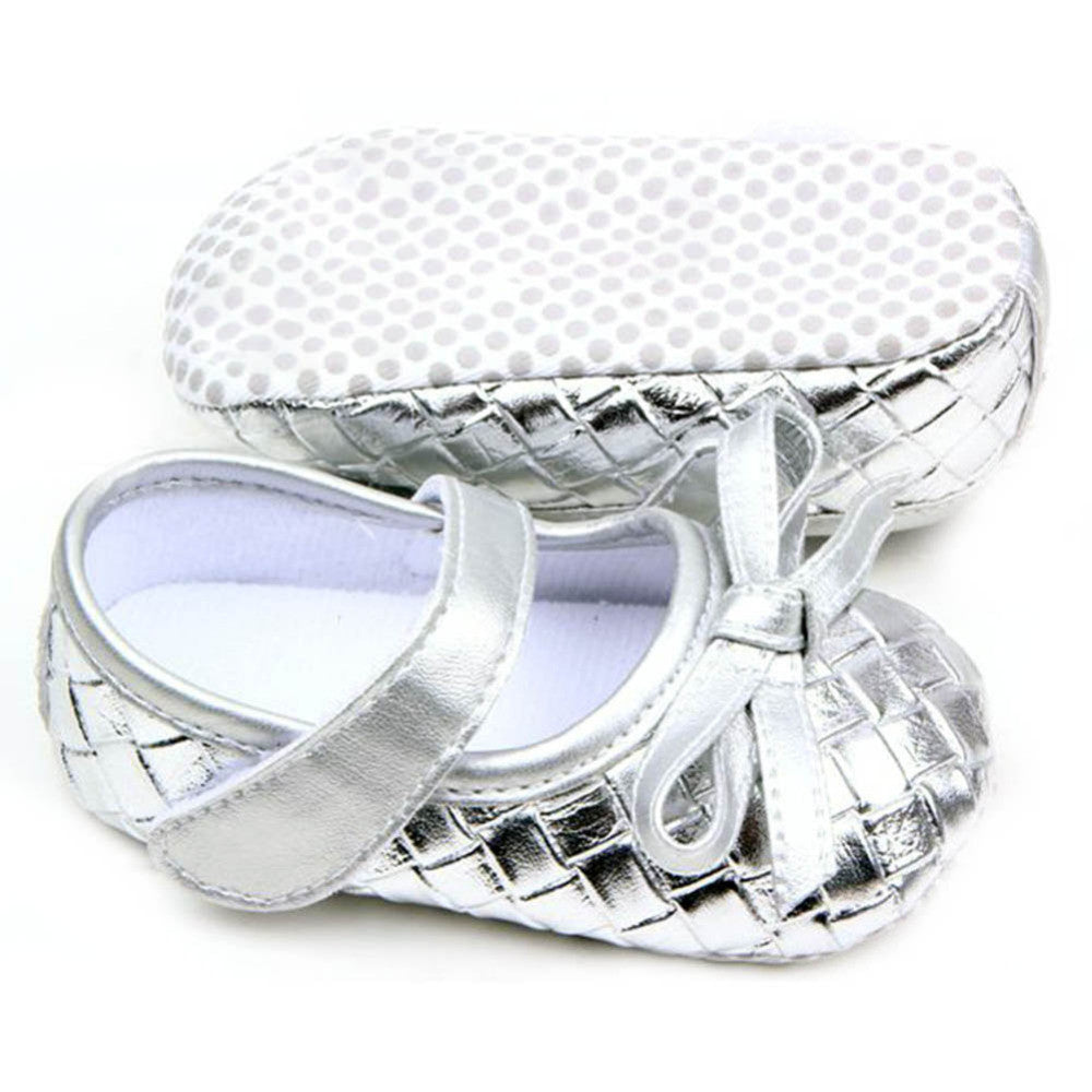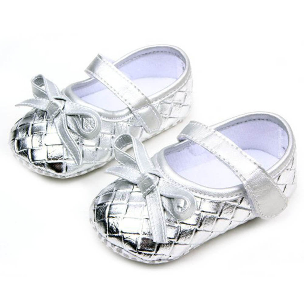 0-12Months PU Leather Bowknot Lattice Baby Girls Shoes Soft Sole Anti Slip Toddler First Walker Shoes
