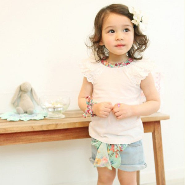 0-2Y Kids Baby Girls Clothing Floral Collar T-shirts Cute Short Sleeve Tops Blouses Shirts PY