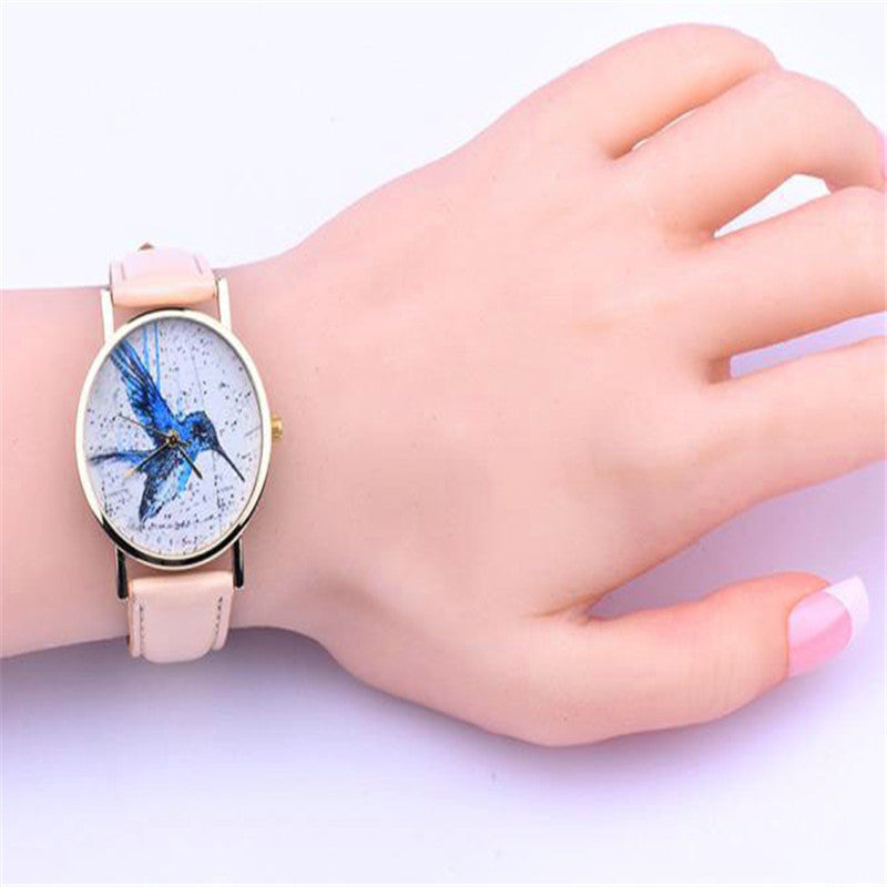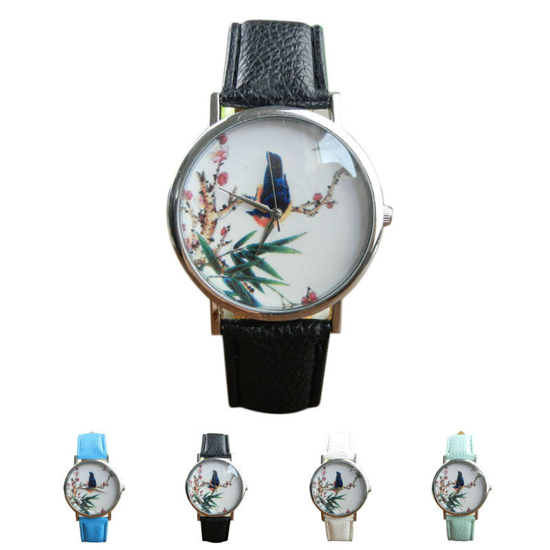 100% brand and .Women Men Band Analog Quartz Business Fashionable charming Birds Wrist Watch For A/B Styles