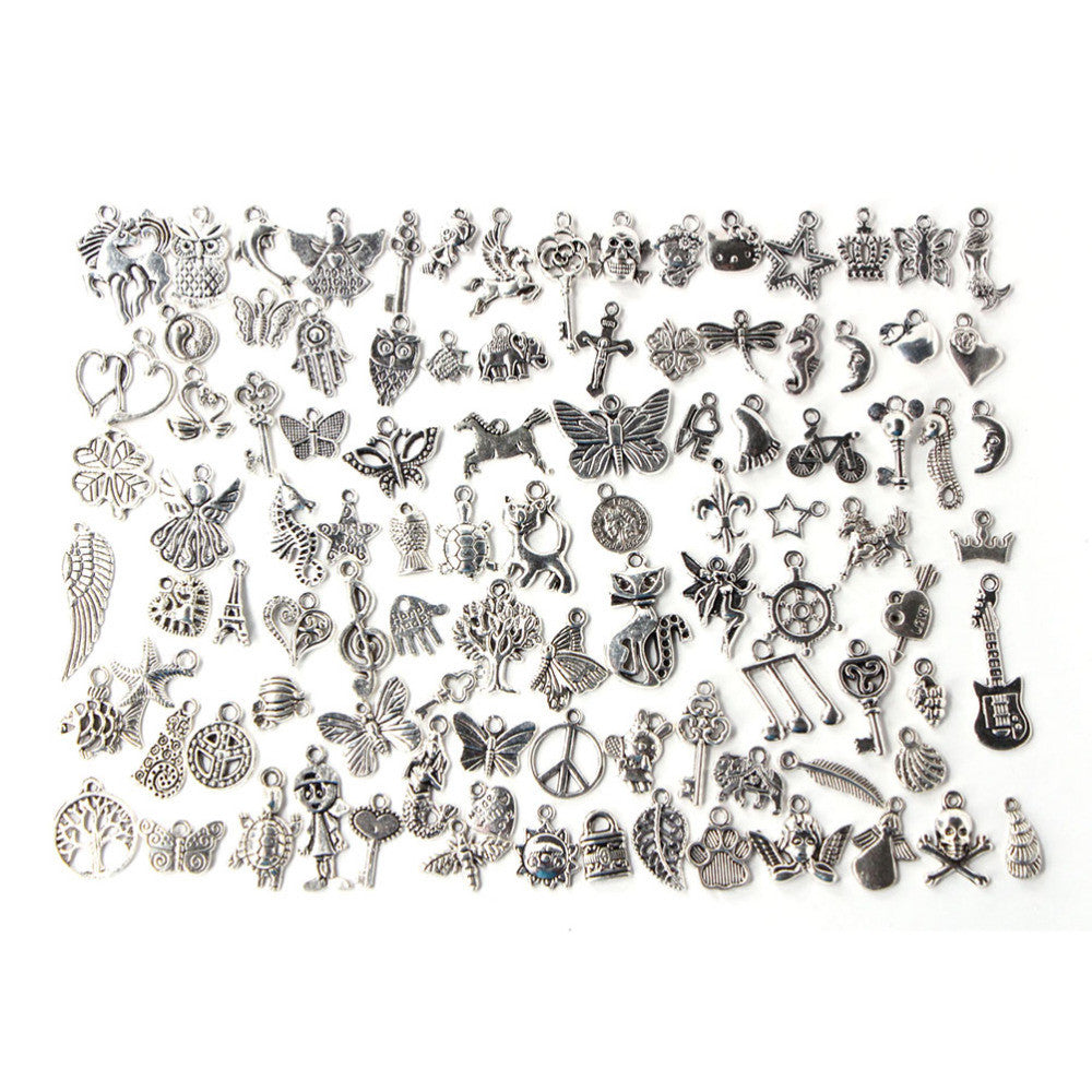 100Pcs Tibetan Silver Mix Charm Pendants Jewelry