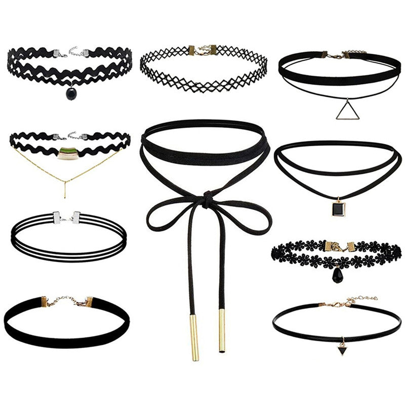 10Pcs Black Gothic Punk Velvet Tattoo Lace Choker Necklace Long Pendant Jewelry Women Collar Chocker