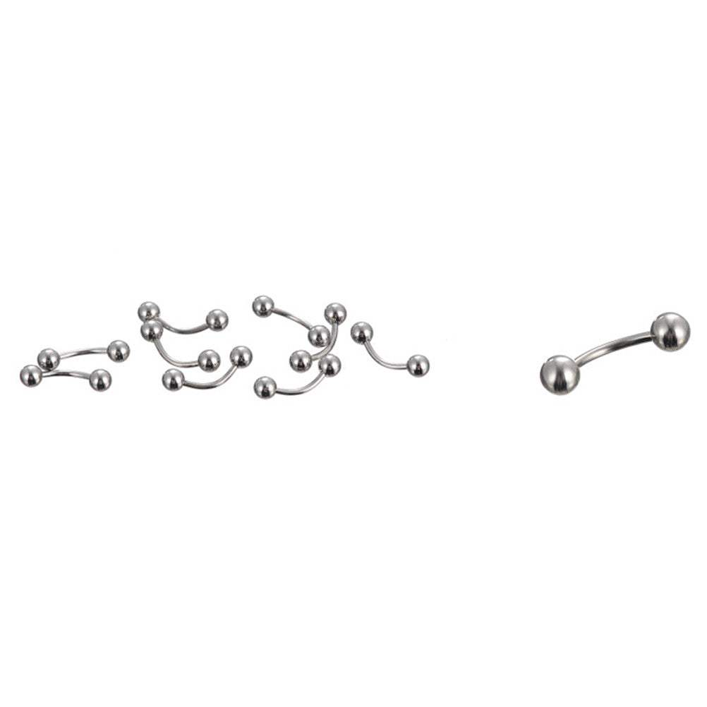 10PCS Stainless Steel Curved Eyebrow Nose Lip Earrings Nipple Piercings Punk Body Piercing