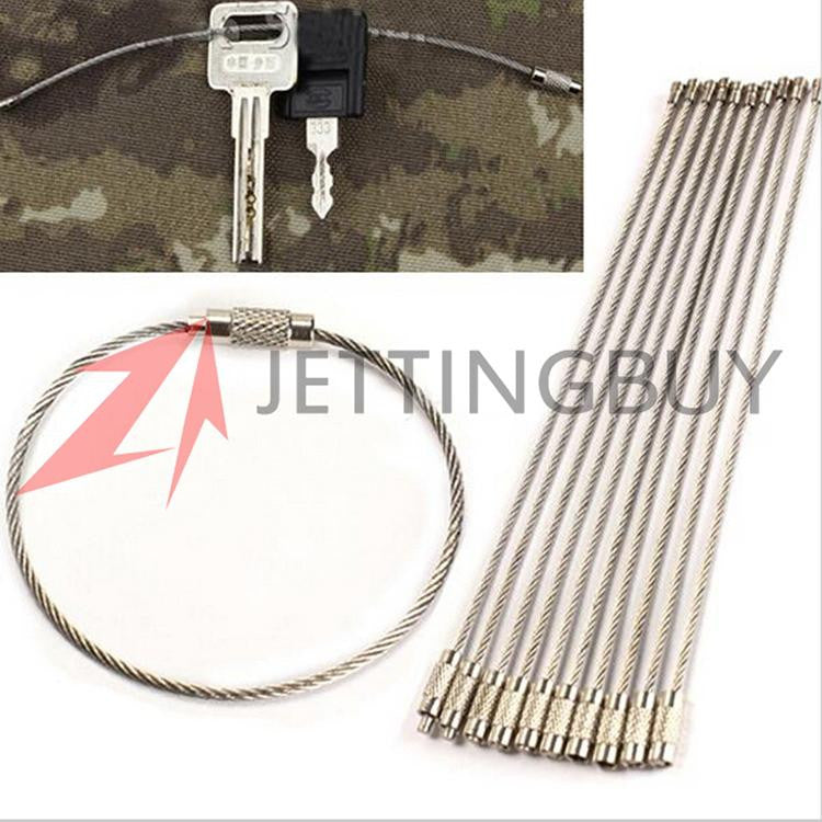 10PCS Stainless Steel Wire Key Ring Chain Keychain Pendant Loop Hiking Climbing Working Aloft Tool Steel Wire Chain Lock 15cm