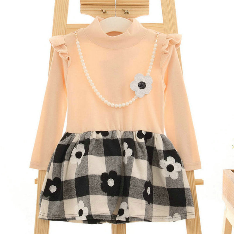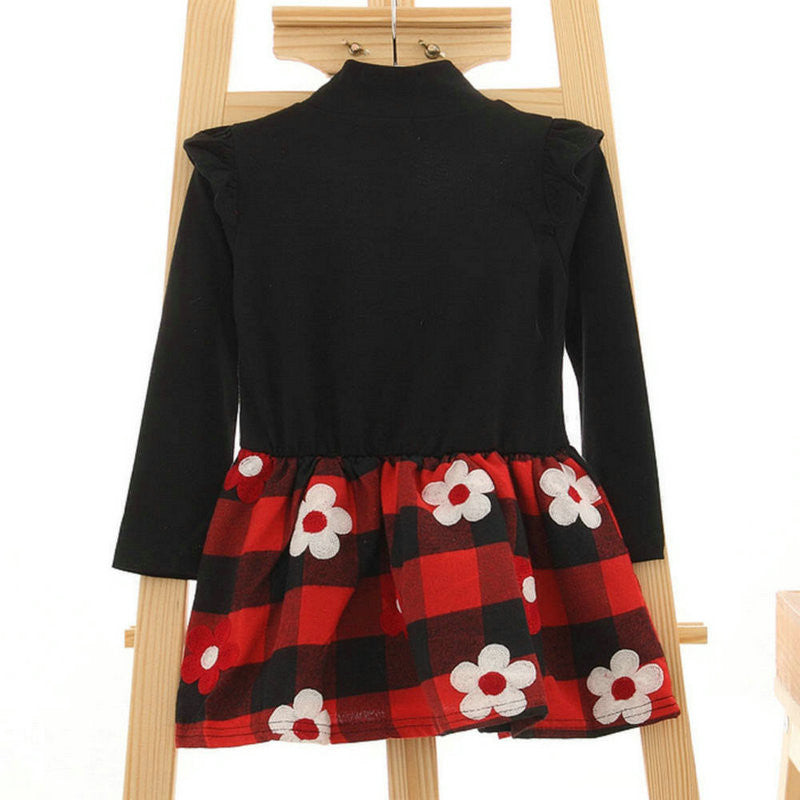 2-7Y Kids Baby Girls Flower Plaids Dress Ruffle Long Sleeve Princess One Piece Party Tutu Dresses PY