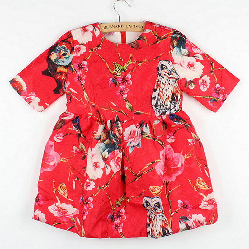 2-8Y New Kids Children Girls Floral Owl Print Princess Dress One Piece Party Dresses