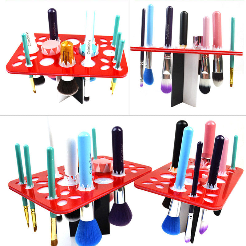 26 Round Holes Air Dry Organizing Cosmetics Makeup Brushes Tower Tree Rack Holder Make Up Tools Kit