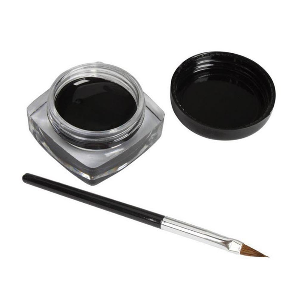 2pc Mini Eyeliner Gel Cream With Brush Makeup Cosmetic Black Life Waterproof