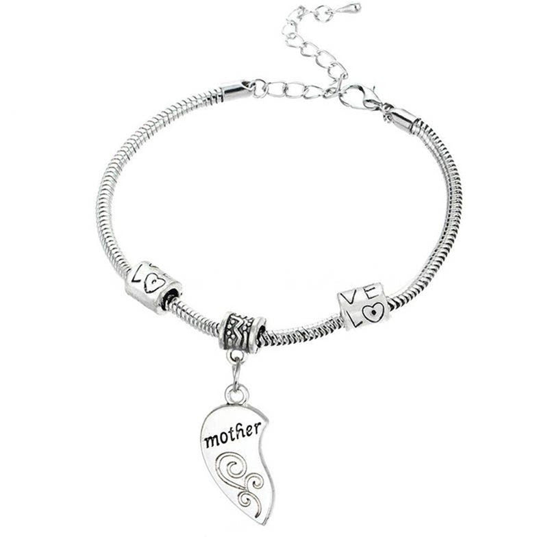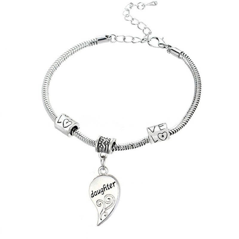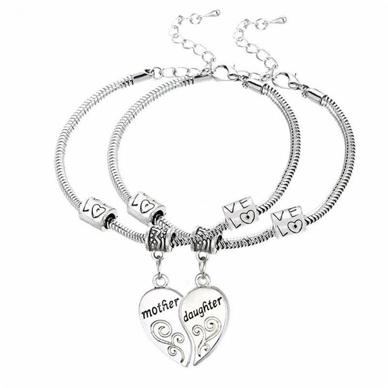 2PCS Mom Women Girl Femme Charm Statement Jewelry Mother Daughter Broken Heart Bracelet Bangle Party Gifts