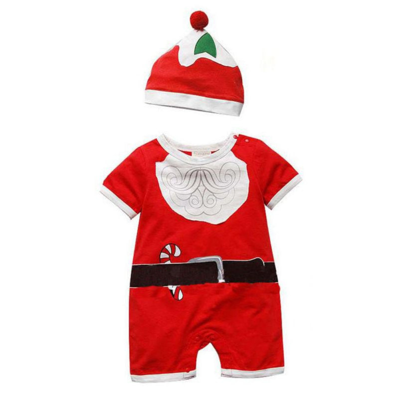 2pcss Baby Boys Girls Xmas Santa Claus Clothing Set Short Sleeve Romper Jumpsuit + Hat Outfit Clothes Sets Christmas Gifts
