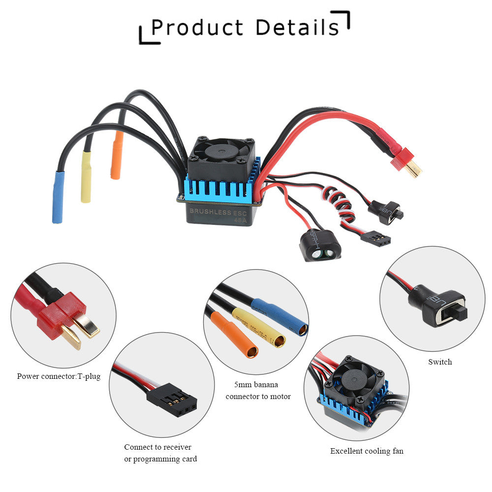 3650 3300KV4P Brushless Motor and 45A Brushless ESC LED Programming Card Combo Set for 110 Scale RC Car Spare Parts