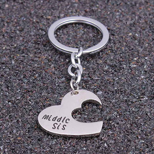 3pc Family Charm Keyring Big Middle Little Sis Sister Heart Keychains Women Girl Friends