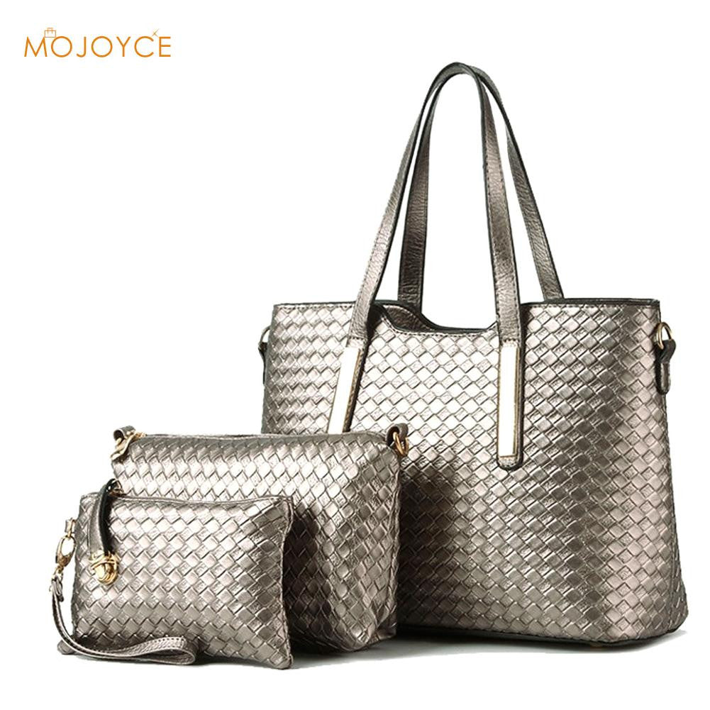 3Set Knitting Women Handbag Composite Bag Tote LadieClutch HandbagMessengBag Clutch Walletsac a main