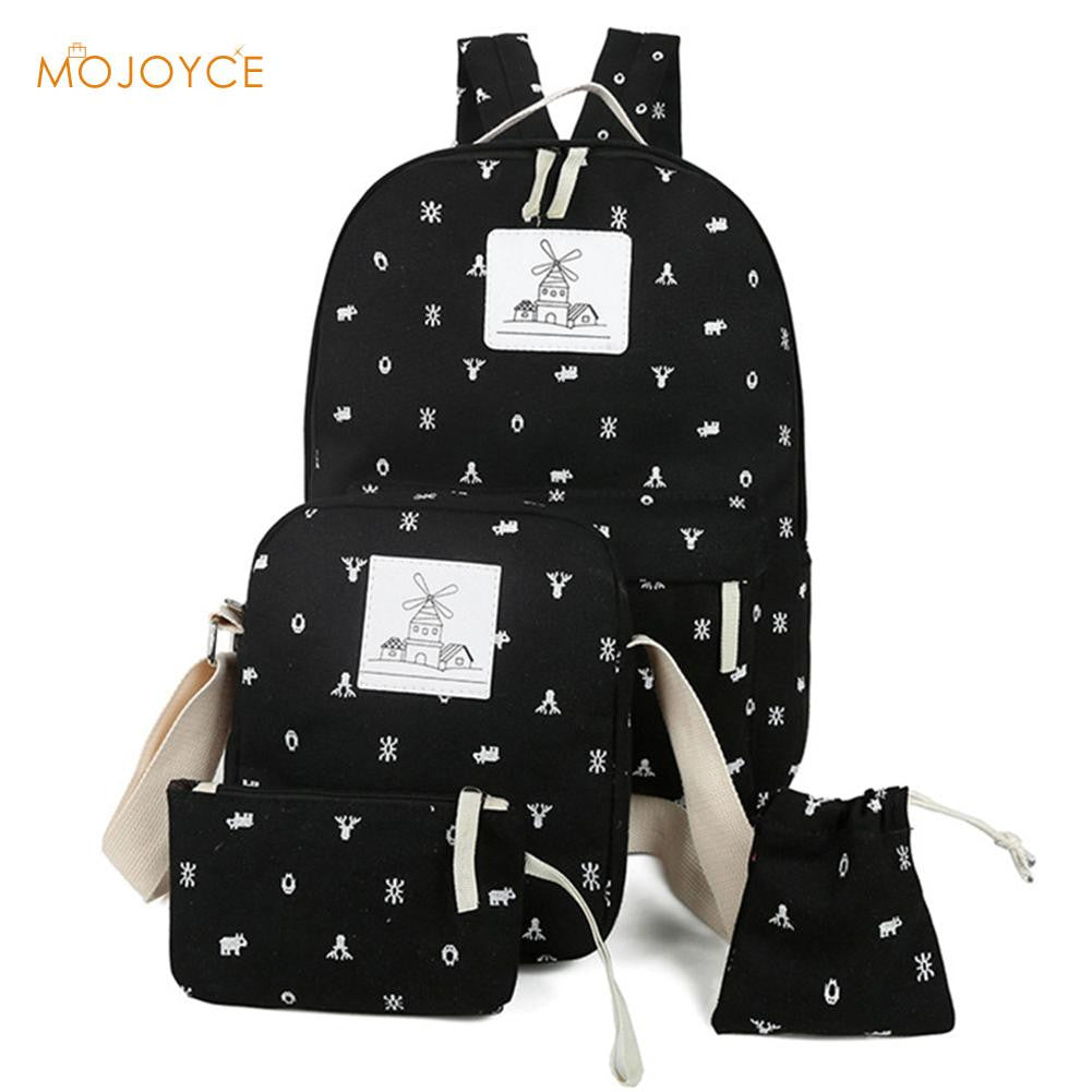 4 pcPreppy Style Women Printing CanvaBackpackStudent School Bag for TeenagGirlRucksack Travel Bag Mochila