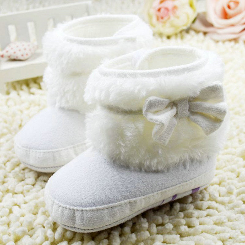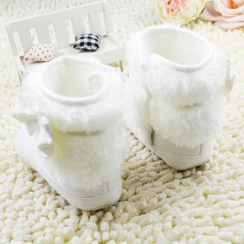 born 0-18Months Baby Girls White Bowknot Crib Shoes Toddler Soft Warm Snow Boots First Walkers